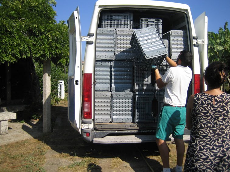 Any Saturday, during any harvest is always the most frantic day of the week. Many of our grape suppliers are only part-time, in other words they hold down full-time jobs and only grow grapes in their spare time. (Of course many of the vineyards in Galicia are so small that this income alone could not support a family). The result being that Saturday is always the most popular day for harvesting, as the family and friends of our growers provide abundant cheap labour.